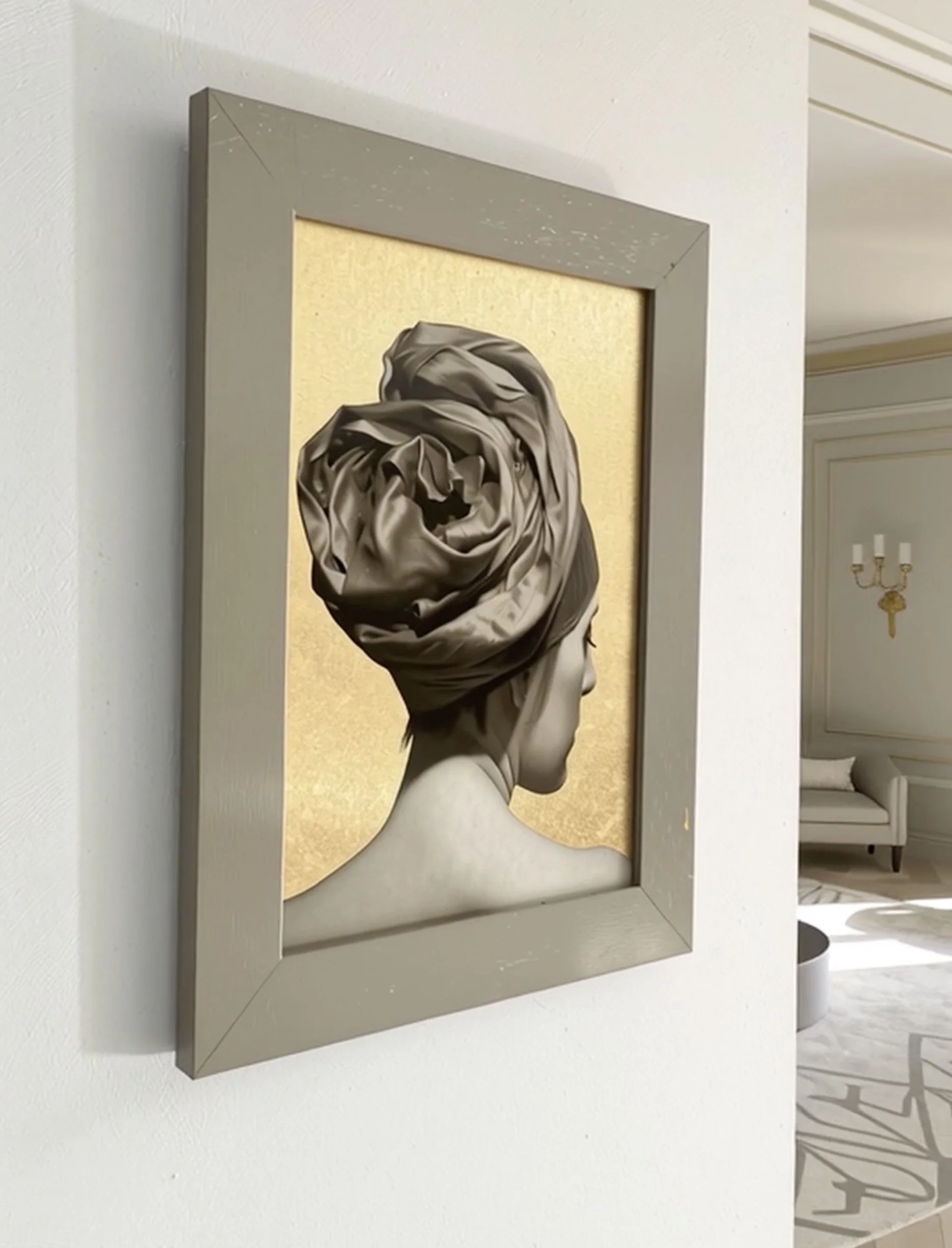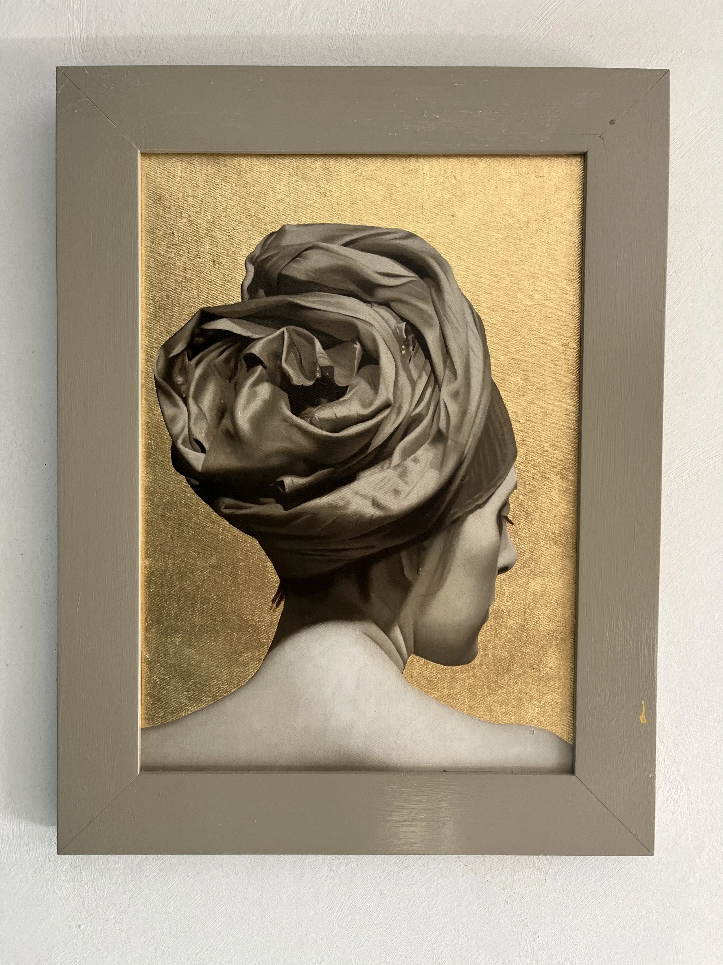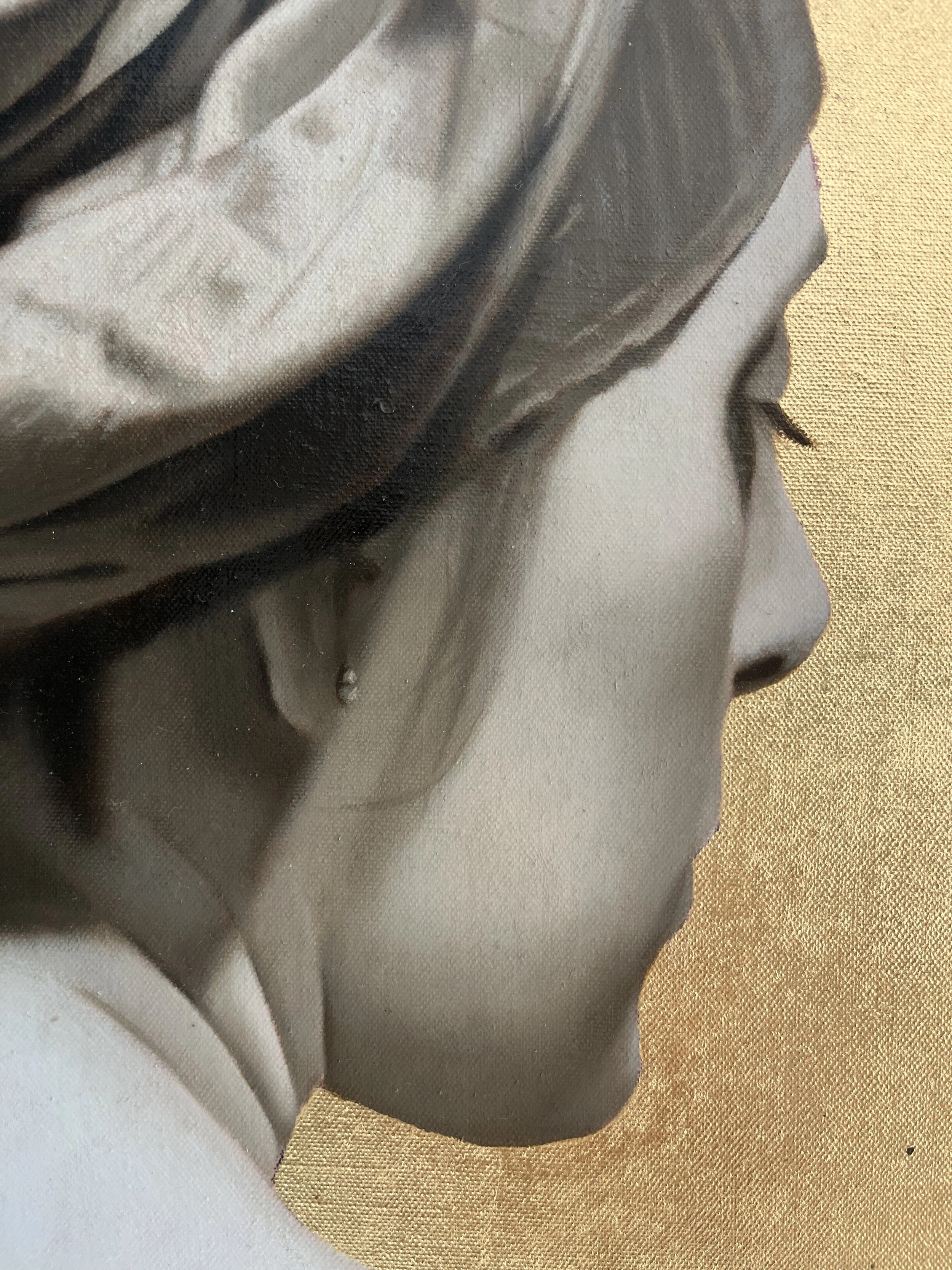 Medium & dimensions: Oil on canvas with gold leaf, 46 x 33 cm